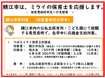 さばえミライ保育士応援金(鯖江市公式ホームページ)
